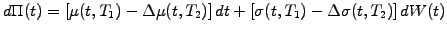 ![$\displaystyle d\Pi(t)= \left[ \mu(t,T_1) -\Delta \mu(t,T_2)\right] dt +\left[ \sigma(t,T_1) -\Delta \sigma(t,T_2)\right] dW(t)$](s3img151.gif) |